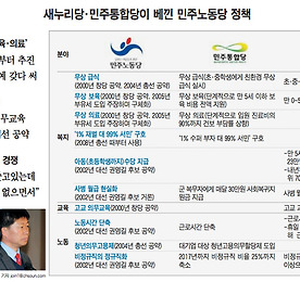 통합민주당 정책 썸네일형 리스트형 새누리당·민주통합당이 베낀 통합민주당 정책 흠. 제가 조선일보 기사를 브리핑하게 될줄이야. 어쨌거나. 조선일보 욕을 많이하지만 좋은 인터뷰가 많이 실리고, 정치부외에는 쓸만한 기사들 많이 올라옵니다. 건전한 보수로 자리잡으면 좋으련만... 어쨌거나, 옛 민주노동당(현 통합진보당)의 정책들이 이번선거에 대거 쏟아져나왔답니다. 출처: 조선일보 2월13일자 기사 새누리당·민주통합당이 베낀 민주노동당 정책 한가지 아쉬운게, 왜 통합민주당 로고를 옛날걸로 쓰냔말입니다. 다시 본론으로 돌아와서. 조선일보에서는 포퓰리즘이라고 욕을하고 있지만, 정책... 좋으면 공유합시다. 시민입장에서는 좋은건 베껴도 된다는 거죠. 아무래도 진보당에서는 집권이 힘듭니다. 이미 낸 정책들이 국과와 민족을 위해서 쓰이면 좋은게 아니겠습니까? ㅎㅎㅎ 더보기 이전 1 다음